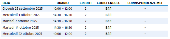 Dal 25 settembre al 22 ottobre 2025 - 5 INCONTRI - 10 ore formative